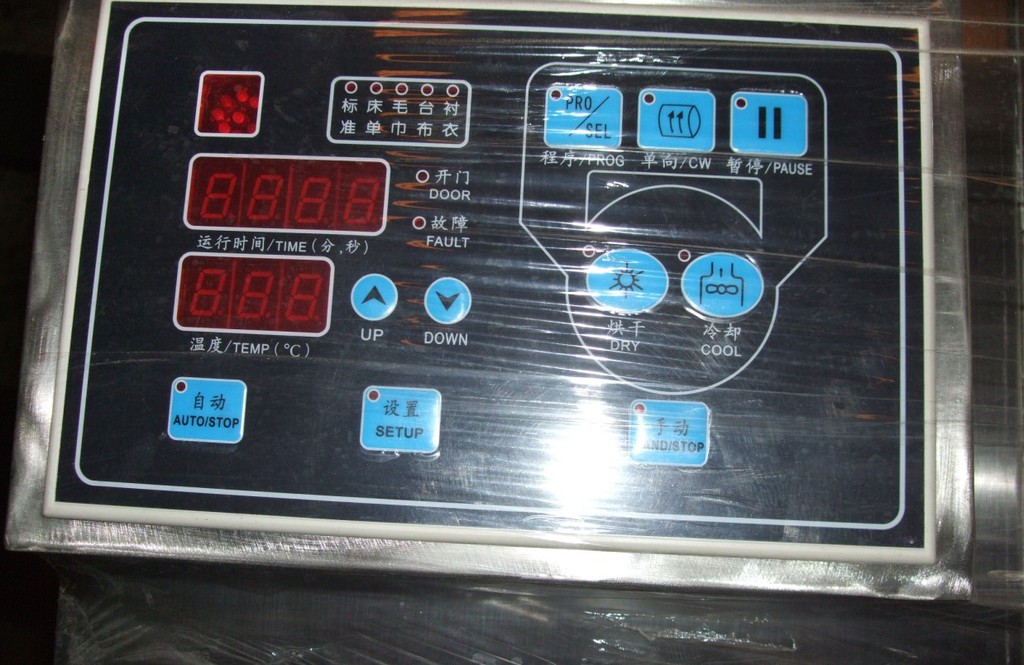 2、全不锈钢机门配备了耐冲击大直径钢化玻璃,能一开门就直接往滚筒内装卸料,关门运转时直接观察水位及洗涤状况。
