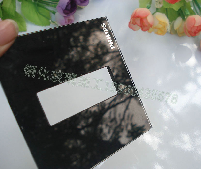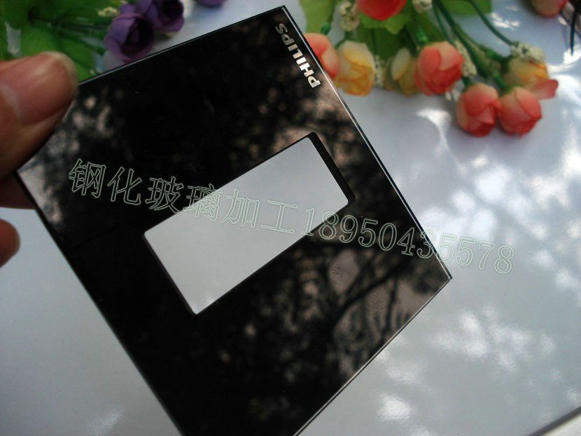 ④开关插座方形孔,或者异形通孔的,也可以内框精雕处理;玻璃四周均为高亮光边,全钢化,来图加工各种非标规格及常规尺寸;