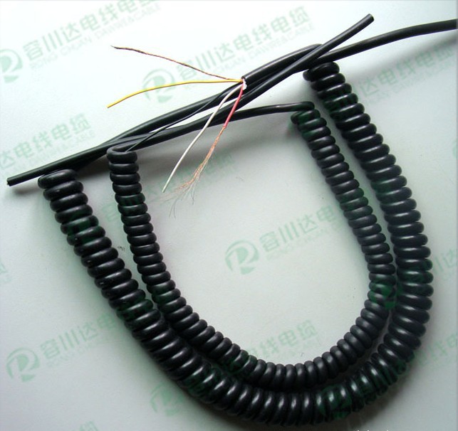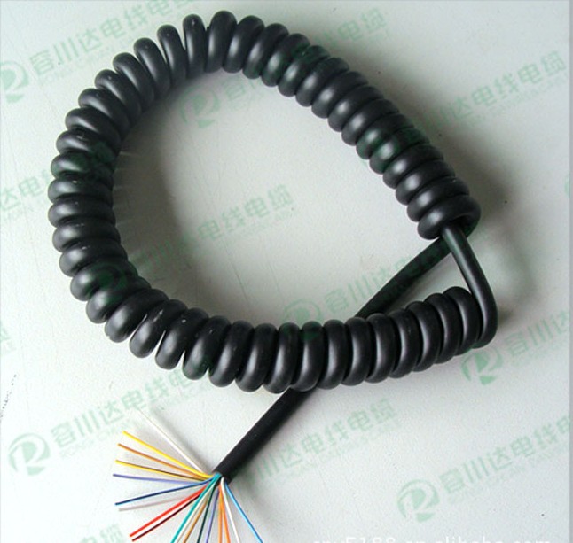 弹簧线是一种利用可伸缩性来工作的设备连接线。一般用TPU电缆绕制而成。用以控制可移动设备运动的电连接、可在短时间内迅速回弹,广泛用于汽车,机器,仪表等可移动设备中。按方向分,主要有左方向螺旋弹簧和右方向螺旋弹簧。按材质分:主要有PVC弹簧线,PUR弹簧线和橡胶弹簧线;PUR弹簧线具有阻燃,耐油,耐酸碱,耐低温,防紫外线,耐磨,抗水解等特效作为弹簧线的首选材料越来越广泛的被运用。