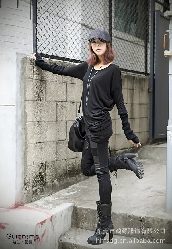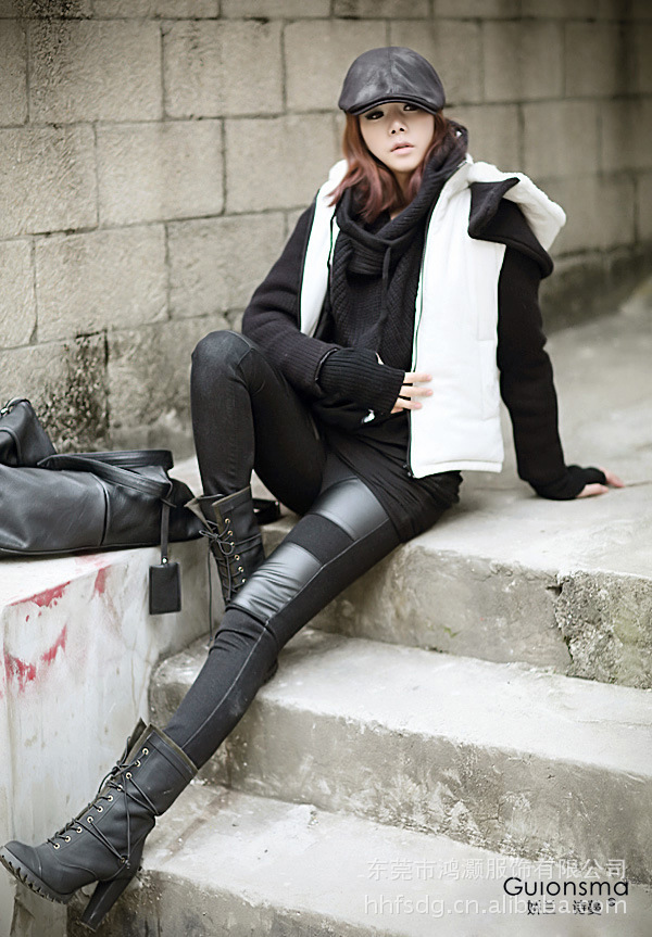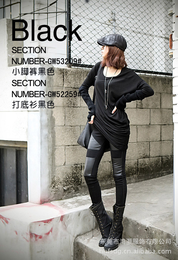 2012秋装新款 娇兰诗蔓女装GW53209时尚拼皮弹力小脚裤