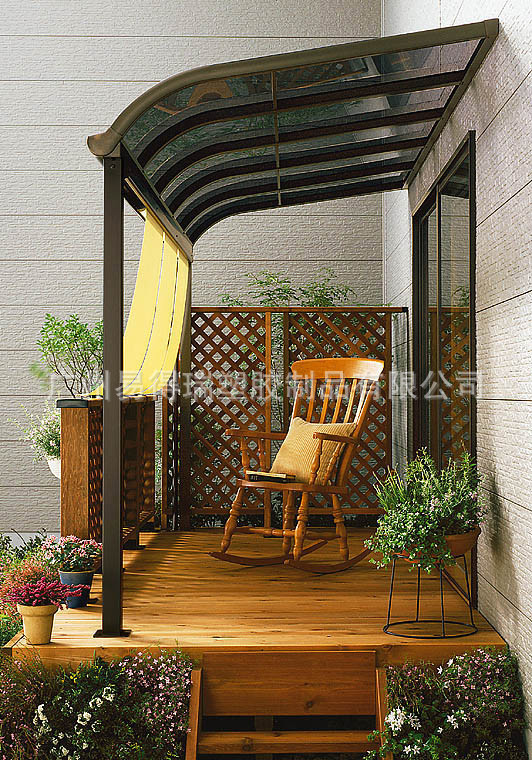 瑞思凯PC露台棚采用高强度的铝合金框架和PC耐力板专业组和而成,时尚,美观,大方,高档,来自顶级工业设计师的精心设计,彰显您的别墅之尊贵,是您的豪华爱舍的必备之选。