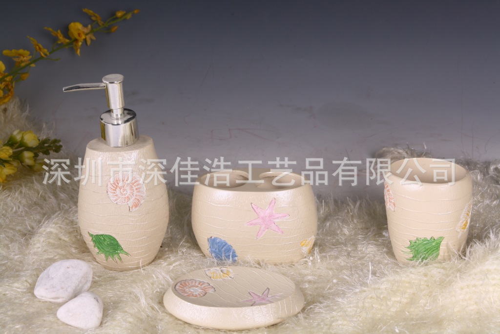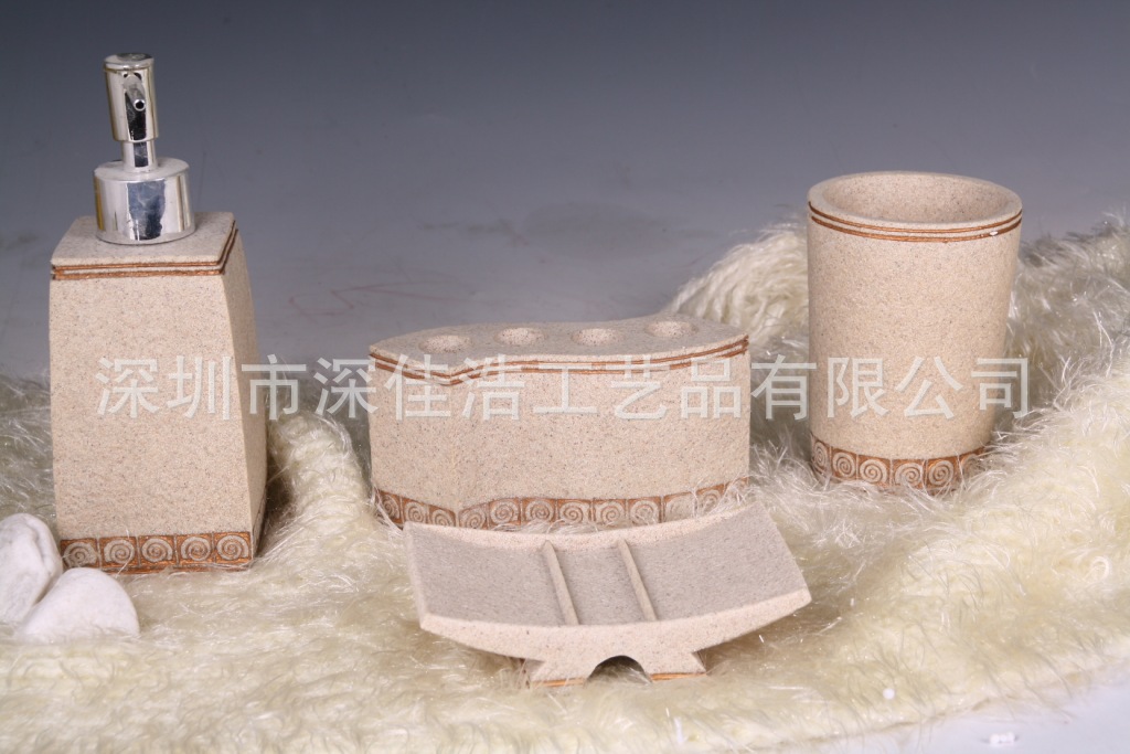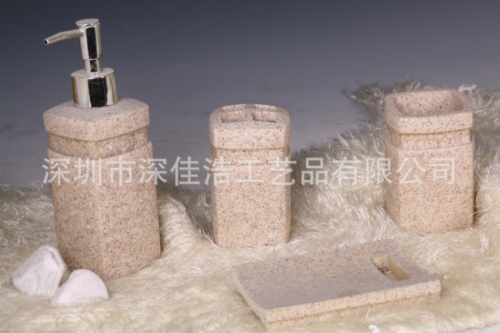 加工定制树脂卫浴四件套 宾馆酒店卫浴套件 沙石系列