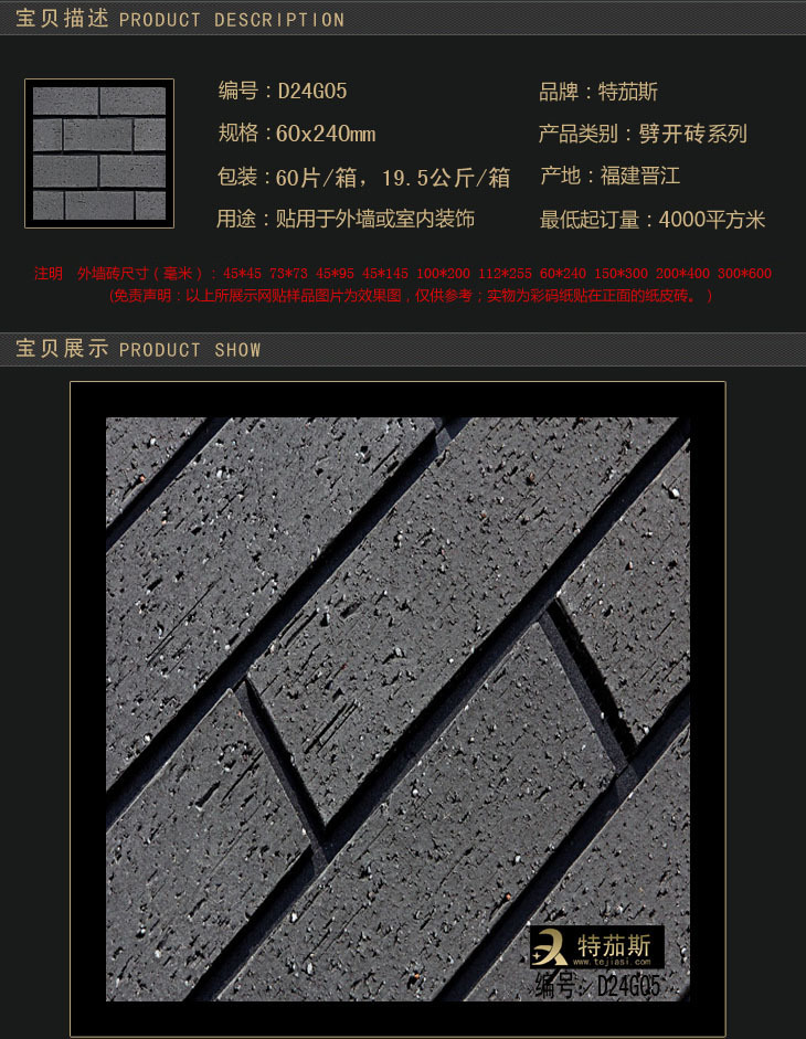 厂家直销 劈开砖 外墙劈开砖 陶土劈开砖 窑变砖