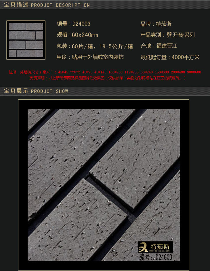 厂家直销 劈开砖 外墙劈开砖 陶土劈开砖 窑变砖