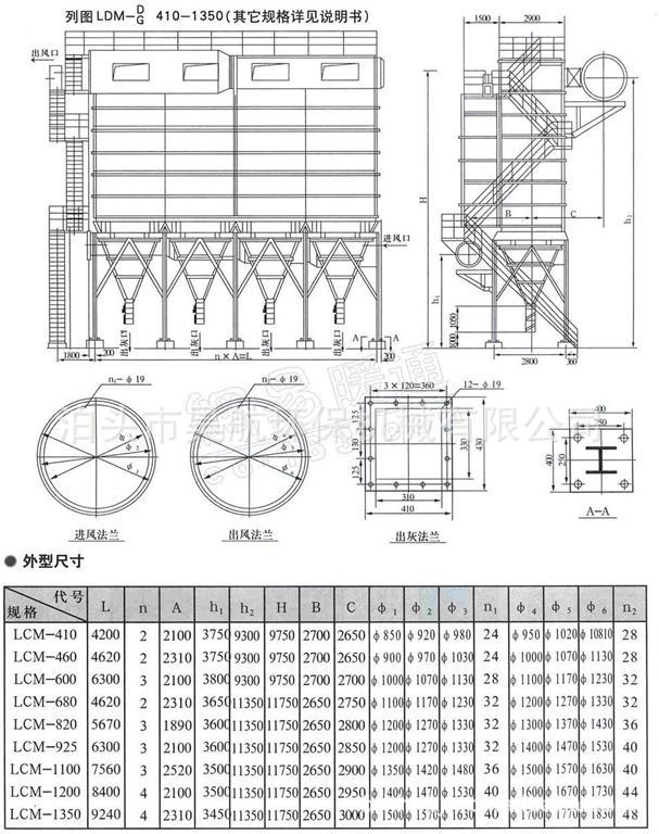 LCM型系列长袋离线脉冲除尘器 简 介 除尘技术的基础上,为满足大风量净化需要而专门研制的具有先进水平的脉冲袋式除尘器,不但具有喷吹脉冲除尘器的清灰能力强、除尘效率高、排放浓度低等特点,还具有稳定可靠、耗气量低、占地面积小的特点,特别适合处理大风量的烟气。长袋低压脉冲袋式除尘器是一种处理风量大、清灰效果好、除尘效率高、运行可靠、维护方便、占地面积小的大型除尘设备。应用于冶金、建材、电力、化工、炭黑、沥青混凝土搅拌、锅炉等行业的粉尘治理和物料回收。 构造特点: 1、长袋离线脉冲除尘器主要由箱体、灰斗、进风均流管、出口风管、支架、滤袋及喷吹装置、卸灰装置等组成。它采用薄板型提升阀实现离线三状态,清灰技术先进、工作可靠。 2、长袋低压脉冲袋式除尘器设计合理的进风均流管和灰斗导流技术解决了一般布袋除尘器常产生的各分室气流不均匀的现象。 3、长袋低压脉冲袋式除尘器袋究结构按不同工况有多种结构形式(八角形、圆形等)。更换滤袋快捷简单。 4、长袋低压脉冲袋式除尘器滤袋上端采用弹簧胀圈形式,密封好;维修更换布袋笼标准长度为6m,还可根据需要增长1-2m。 5、长袋低压脉冲袋式除尘器电磁脉冲阀易损件膜片的使用寿命大于100万次。除尘器控制可采用先进的程控器,具有差压、定时、手动三种控制方式,对除尘器离线网、脉冲阀、卸灰间等实现全面系统控制。