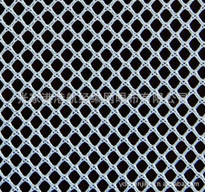 针织网眼布也分两种,纬编针织网眼布和经编针织网眼布,其中经编网眼布一般是用西德高速经编机织造,原料一般为锦纶、涤纶、氨纶等,针织网眼布的成品有高弹网眼布、蚊帐布、洗衣网、箱包网、硬网、三明治网布、可里可特、绣花网布、婚纱网、方格网、透明网、美国网、钻石网、提花网、花边等各种网眼布。
