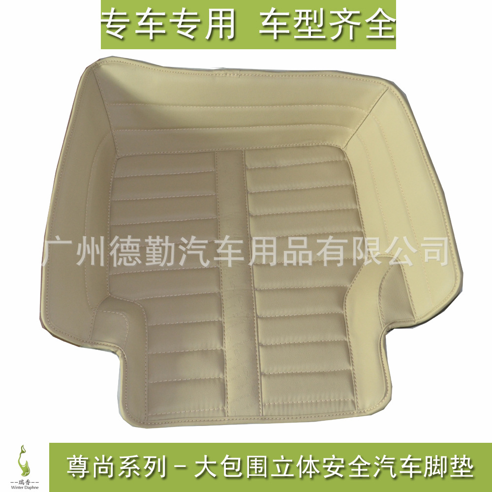 豪华皮革大包围脚垫,专车专用,全手工车缝,10厘海绵,加厚环保皮,EVA底贴加强防滑魔术绒,超豪华全金属LOGO,局部压花,产品净重4.5KG/套(视车型有少许出入)