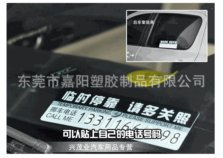 以下是效果图。(配有强力吸盘,可以吸在前挡、侧挡、后档、玻璃上不会掉,尽量吸在明显的地方,以免吸了人家也看不到。也可放置在前面仪表盘.省去吸盘的麻烦)