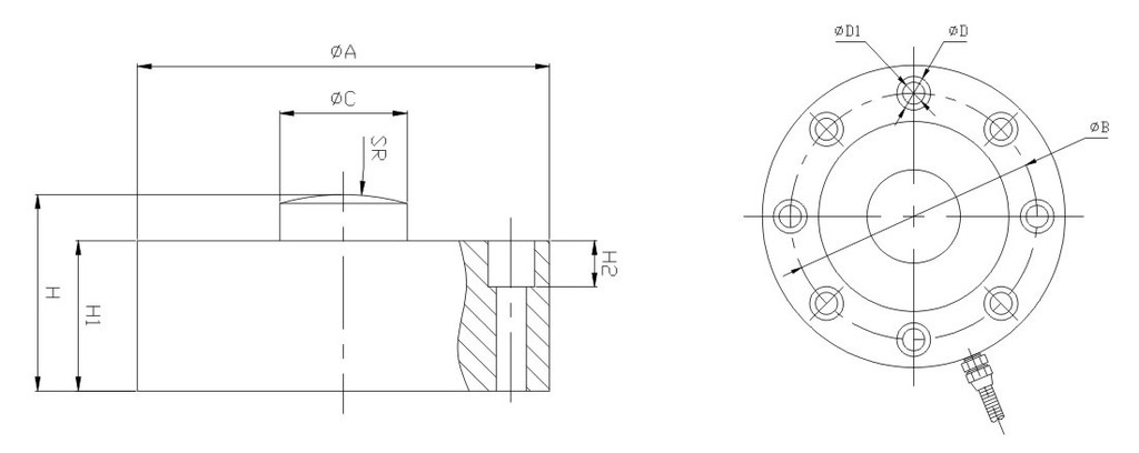 量程 | ФA | ФB | ФC | SR | H | H1 | H2 | ФD | ФD1 |