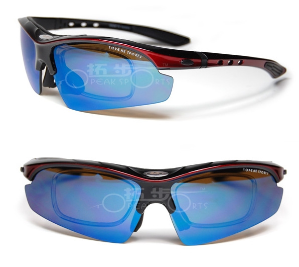 镜片:透明旋彩镀膜、灰色镀水银、兰色、黄色、咖啡色镀蓝色REVO膜各一副(共计5副)