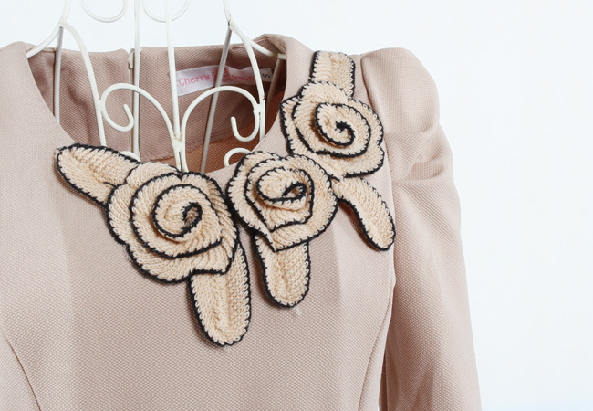 2012新款 甜美 立体花朵 泡泡袖 收腰 品牌 长袖 公主连衣裙