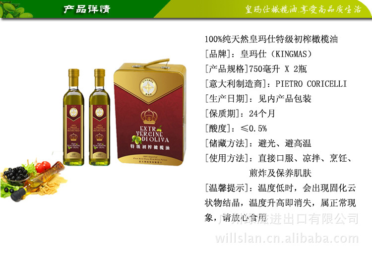 皇玛仕中国总代理原装进口特级初榨橄榄油750ML*2金盾礼盒