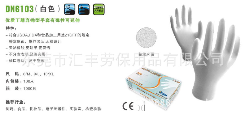 4.无粉,不会像使用有粉手套一样引起玉米粉污染食品的危险.