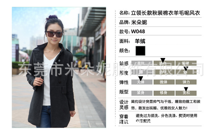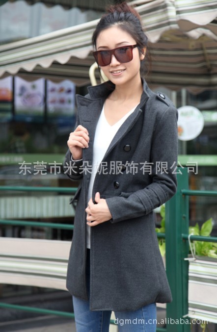 米朵妮 2012韩版时尚百搭中长款风衣外套 大衣批发W054