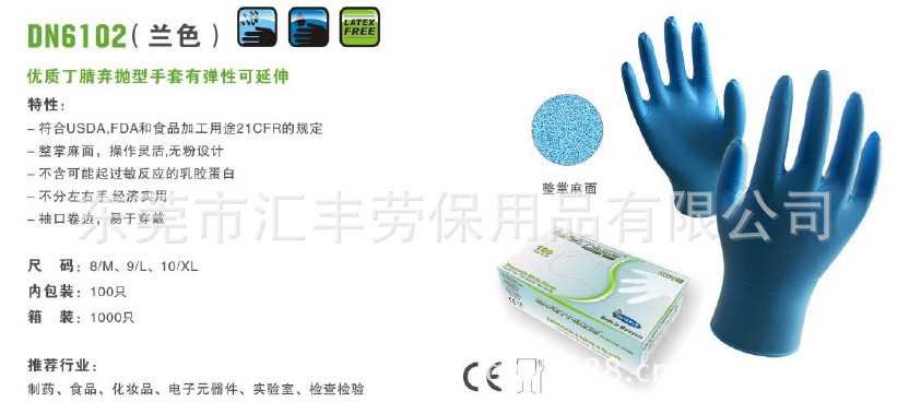 3.100%丁腈;无蜡、硅胶或增塑剂。