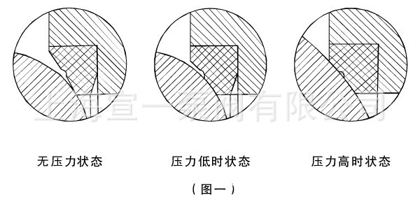 阀杆采用下装式、设置带有密封垫片的倒密封结构,倒密封的密封力随阀腔介质压力的增高而增大,从而确保阀杆的密封效果。当阀腔异常升压时,阀杆不会被冲击。填料采用设计合理的V型结构、能将阀腔内部的介质力及外部压盖的锁紧力有效的转化成阀杆的密封力。(如图六)