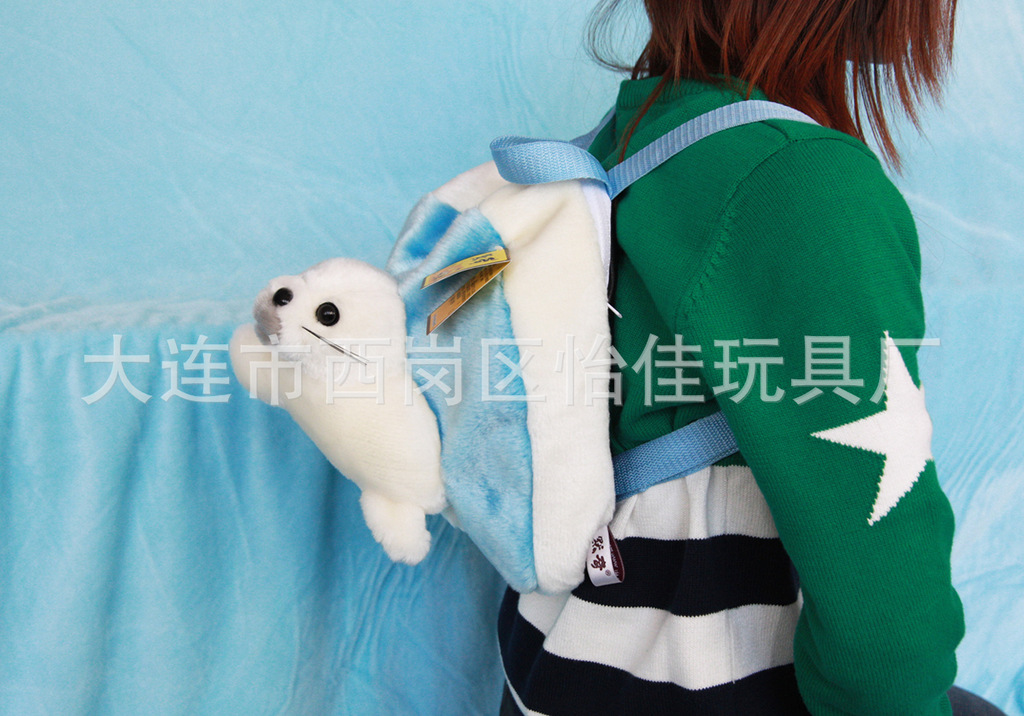 关于质量:默奇正版海豹背包,产品严格按照出口欧美玩具的制作标准,面料采用优质腈纶超柔毛绒,填充棉为A级中空三维PP棉。每个玩具都经过严格的出厂检验,亲可放心选购和使用!