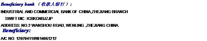 如需发货到国外,需汇款到公司美金帐户,公司美金帐户如下
