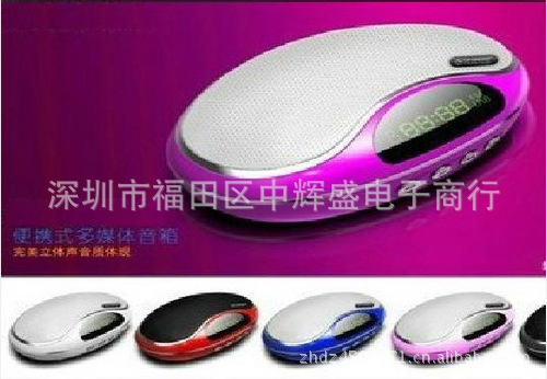 可播放TF卡、U盘(可支持8G) 带数字显示屏.带收音 内置天线,内置MP3格式,可连接手机、P3、MP4、PC等具有音源输入设备,外置5C电池。