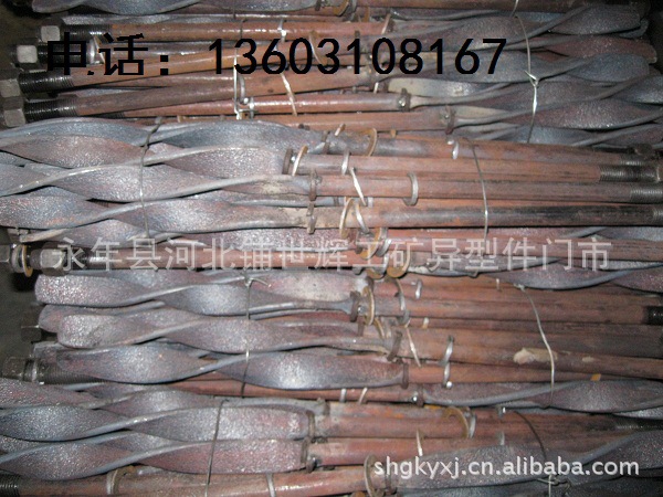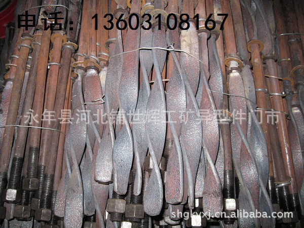 主要产品有:锚杆,托盘,锚杆专用螺母,U型卡兰,六角螺栓,六角螺母,膨胀螺栓,丝杆.(1--3)米.化学锚栓,U型螺栓,膨胀螺栓,V型螺栓,T型螺栓,双头螺栓,马车螺栓,活节螺栓,地脚螺栓,方头螺栓,钢结构用高强度大六角头螺栓,扭剪型螺栓连接副,鱼尾螺栓,道叉螺栓,鹅蛋丝,扇面丝,斗型丝,丁字丝,,道夹板,鱼尾板,压板,扣板,铁垫板,橡,弹垫,平垫,,防盗螺栓,防盗螺母。同时可根据用户要求定做异型螺母及各种异型件和非标件。 我们愿以“雄厚的实力,一级的产品质量,科学的管理,优质的服务”与广大客户真诚合作,与您共创一个美好的明天。联系人:张东辉,电话:13603108167 电话:03105139272 杆支护是在边坡、岩土深基坑等地表工程及隧道、采场等地下硐室施工中采用的一种加固支护方式。用金属件、木件、聚合物件或其他材料制成杆柱,打入地表岩体或硐室周围岩体预先钻好的孔中,利用其头部、杆体的特殊构造和尾部托板(亦可不用),或依赖于黏结作用将围岩与稳定岩体结合在一起而产生悬吊效果、组合梁效果、补强效果,以达到支护的目的。具有成本低、支护效果好、操作简便、使用灵活、占用施工净空少等优点。[1] 锚杆的力学作用主要有悬吊作用、组合作用、挤压作用锚杆