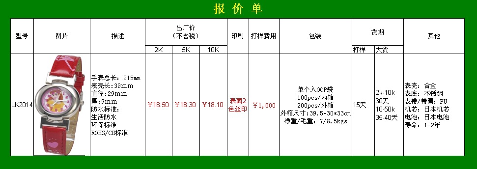 【产品材质】表壳:合金,表带:高级皮料,机芯/电池:国产