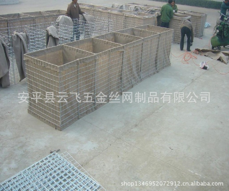 1打开包装-----2展开防爆墙网-----3连接相邻两套防爆墙网----4装土或泥沙---5完成