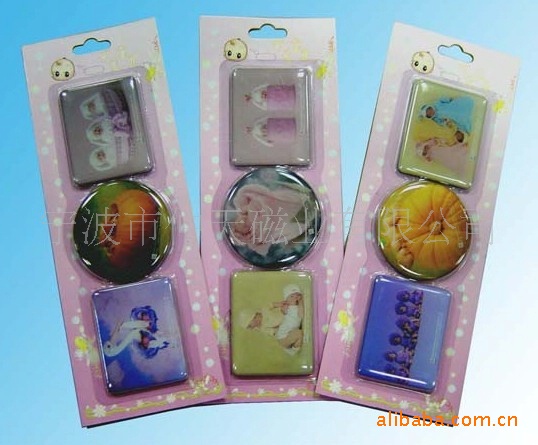 3)磁性冰箱贴:采用下面软胶磁铁+上面铜版纸或PVC彩色印刷腹膜制作而成。