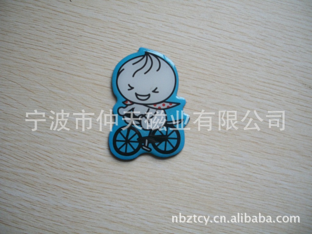 3)磁性冰箱贴:采用下面软胶磁铁+上面铜版纸或PVC彩色印刷腹膜制作而成。