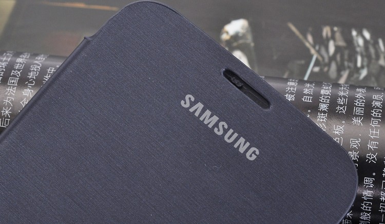 【产品描述】大屏幕手机的屏幕一直都很“娇弱”,因此,三星Galaxy Note II 特为此提供了保护套作为手机的自带配件,从图中可以看到,三星Galaxy Note II 的保护套和手机一样,设计简洁有力,而超薄的皮质材料也没有增加多少手机的厚度,手感相当不错!!!