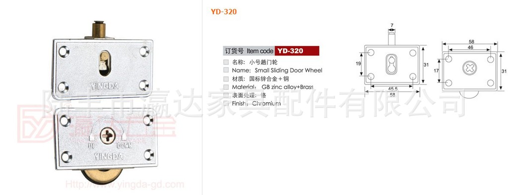 中高档家具配件;暗藏铰链;玻璃铰链;玻璃夹;装饰五金;趟门轮,移门轮;合金脚轮,塑料脚轮;连接件,拆装件;衣通座,衣通管;脚垫,门吸;玻璃拉手,暗拉手;各种规格线盒;卫生隔断配件;塑料键盘;内藏式自滑导轨;螺丝,螺母;玻璃合页;主营行业: