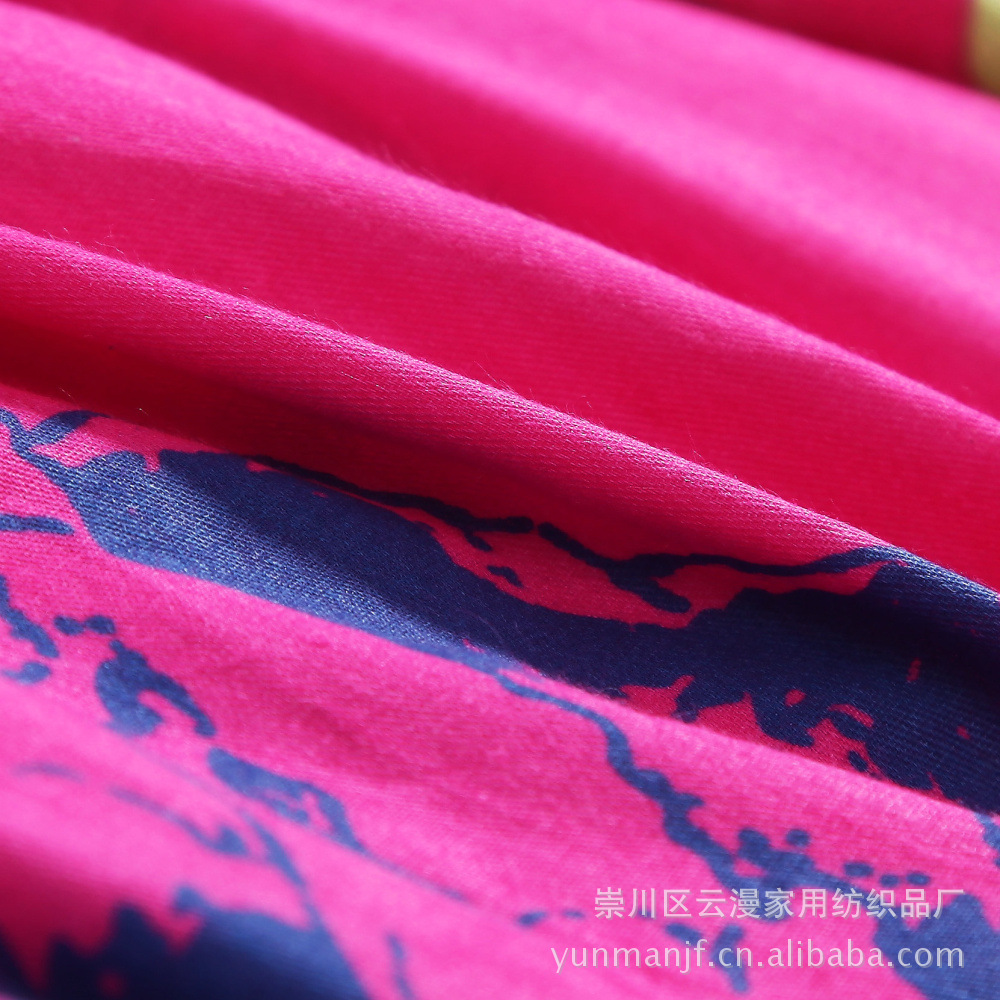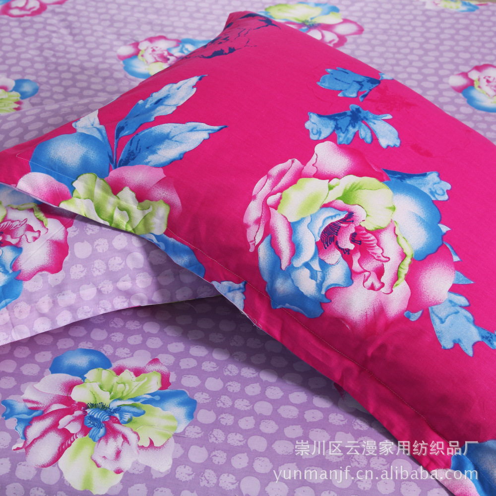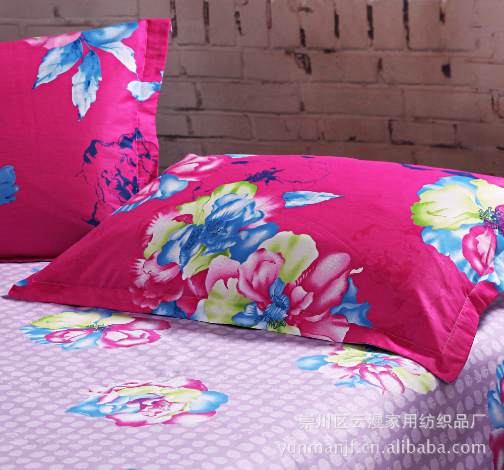 品名Name:爱情滋味 结构Structure:床单四件套:被套200×230×1,床单230×250×1,枕套48×74×2 工艺面料Fabrics:40支纱纯棉斜纹、半活性印花 重量Weight:2.2kg 包装Package:简包装 产品特性Introduction:纯棉斜纹,吸湿及亲肤性很好,摸起来柔软舒适,品质感油然而生;活性印花,使得设计与床品融为一体,凸显档次;繁华的设计非常的出众,营造出超炫的感觉! 【产品名称】:全棉环保AB版印花四件套 【规格】:被套200*230cm 床单(圆角)230*250cm 枕套(信封式)45*70cm*2 枕套花型一般为被套面料随机裁剪,就是枕套有可能会是被套的任何一个地方。 【适合范围】:适合于被子为200*230的。标准套件,适用床大小为:150*200cm 180*200cm 的床。由于床单为230*250的,用在1.8米的床上挂边较少。 【产品洗涤说明】:全棉面料,深色的第一次水洗会有浮色现象,注意不要用热水或开水洗涤,并且第一次浸泡不要超过10分钟,如果方便,适当加一点食用盐。