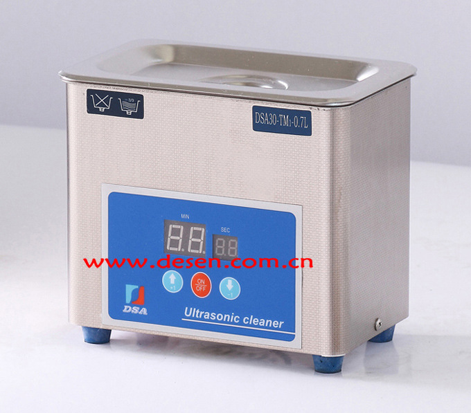 5. 超声波开启方法:在右边时间显示值全部为“00”时,超声波为关闭状态,工作指示灯不亮;按时间设定键“+5”使时间显示值不为“00”即开启超声波进行清洗,同时清洗时间开始倒计时,超声波工作指示灯亮,当时间恢复到“00”时超声波自动关闭,工作指示灯熄灭。