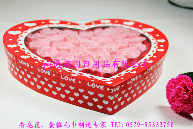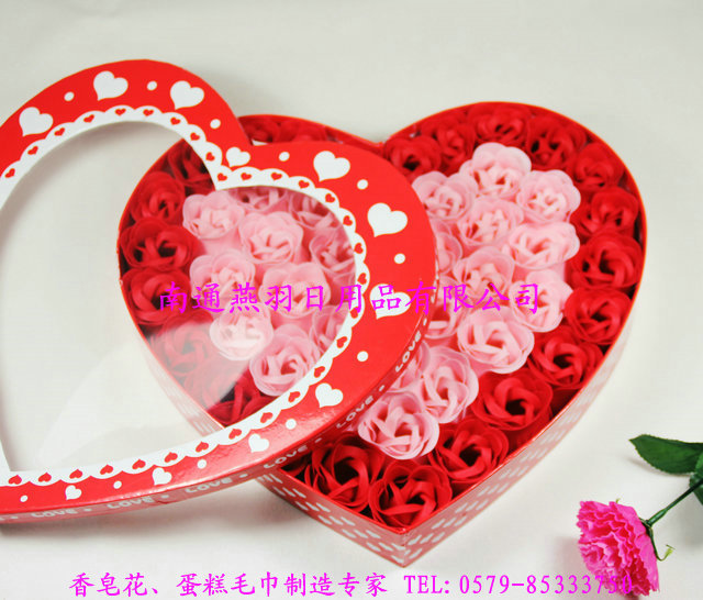现在呢,这款香皂玫瑰花,是用薄薄的香皂片经过手工加工成的精美艺术品,既可以拿来欣赏,在欣赏之余也可以学习电视明星那样,来个玫瑰浴,在浴缸中放上几朵鲜艳的玫瑰皂,感觉那个美啊……