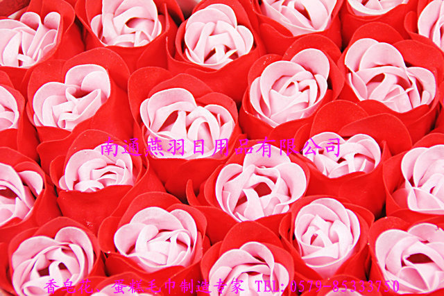 现在呢,这款香皂玫瑰花,是用薄薄的香皂片经过手工加工成的精美艺术品,既可以拿来欣赏,在欣赏之余也可以学习电视明星那样,来个玫瑰浴,在浴缸中放上几朵鲜艳的玫瑰皂,感觉那个美啊……