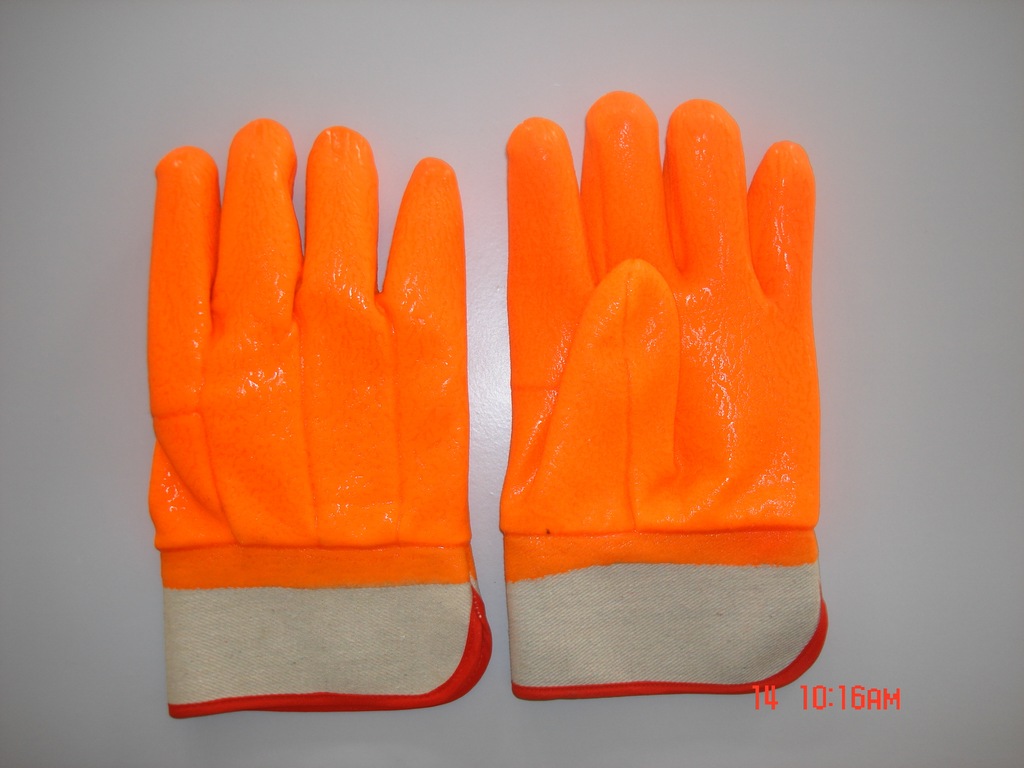 荧光PVC双浸,海绵复合布内衬,砂面,安全袖口;耐油耐酸碱,防水;11.5元一副,1件10打120副;不含运费和税费。