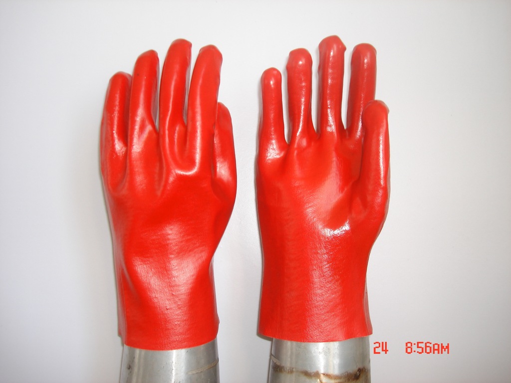 红色PVC单浸,光面,棉毛布内衬,30CM平口;耐油耐酸碱,防水;4.6元一副,1件10打120副;不含运费和税费。