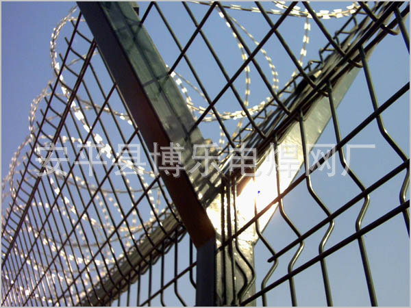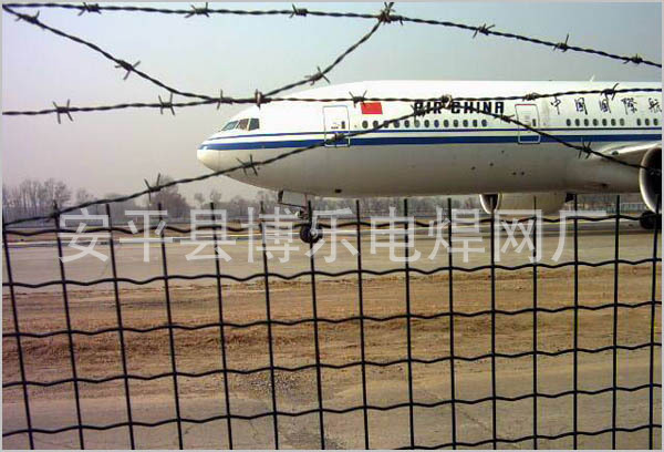 机场护栏网又称作“Y型安全防御护网”,是由V型支架立柱加强型焊接片网,安全防盗连接件和热镀锌刀片刺网组成强度和安全防御性级别很高。近年来被广泛应用在机场,军事基地等高安全场所。