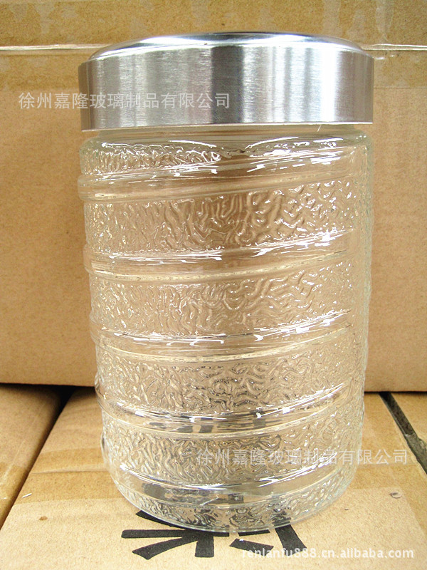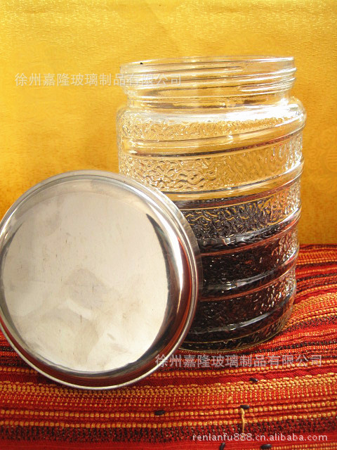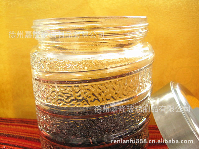 高档花纹玻璃瓶/储物罐/储物瓶/环保玻璃瓶/瓶身花纹工艺储物瓶