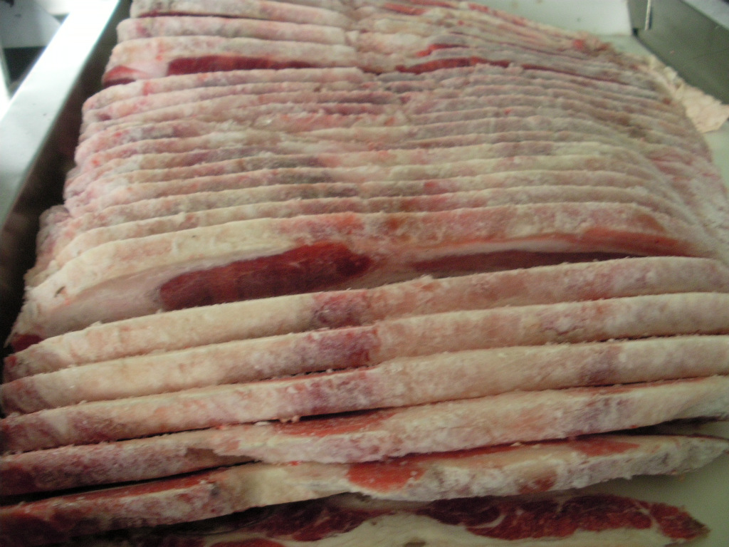 传送带型切片、切排机,采用食品生产专用传送带,将成型的肉卷整齐的传送出来,大大提高了操作的安全性。双导向推进器推进,自动润滑系统,免保养。每小时加工肉片100-500公斤,切片厚薄调整范围0.3-5cm,成型好,效率高,节省人工成本,是大中型肉片加工户首选良机。