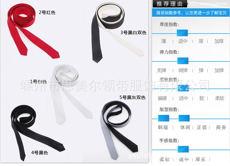 个性与艺术性完美组合,经典与流行和谐并存,为满足时尚人士顶级化要求,我们历经几年精心打造,推出自己的主打品牌--E.SMILE“思美尔”,在同行及消费者心中,已享有较高的品牌声誉与价值。从内部管理到对外宣传,从员工素质到产品质量,从产品设计、生产、销售到售后服务,无不体现出“思美尔”的品牌形象和我们的管理理念。在新一轮的企业发展目标中,我们审时度势,全力争创中国领带服饰的新品牌!