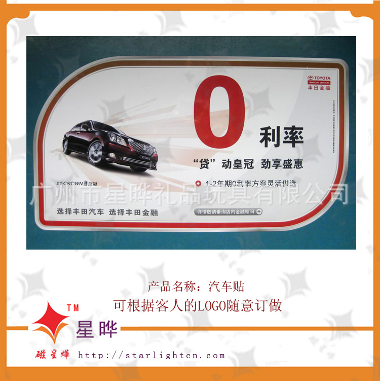 34.磁性车贴:采用胶磁+PVC+丝网印刷制作而成