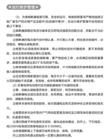 产品性能符合GB15166.3-94国家标准和IEC282-2国际标准技术要求。编辑本段使用环境条件 1.产品正常使用条件:a)周围空气温度:上限+40℃,下限-30℃ b)海拔高度不超过1000m c)最大风速不超过35m/s d)无经常性剧烈震动 2.产品不适用于下列场所: a)有燃烧或爆炸危险性的场所 b)有剧烈震动或冲击的场所 c)有导电、化学气体作用及严重污秽(不超过污染等级:Ⅲ级)、盐雾地区
