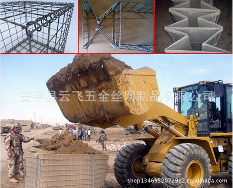 1打开包装-----2展开防爆墙网-----3连接相邻两套防爆墙网----4装土或泥沙---5完成