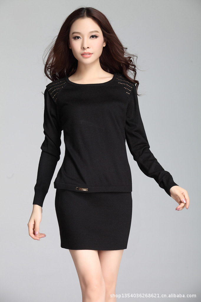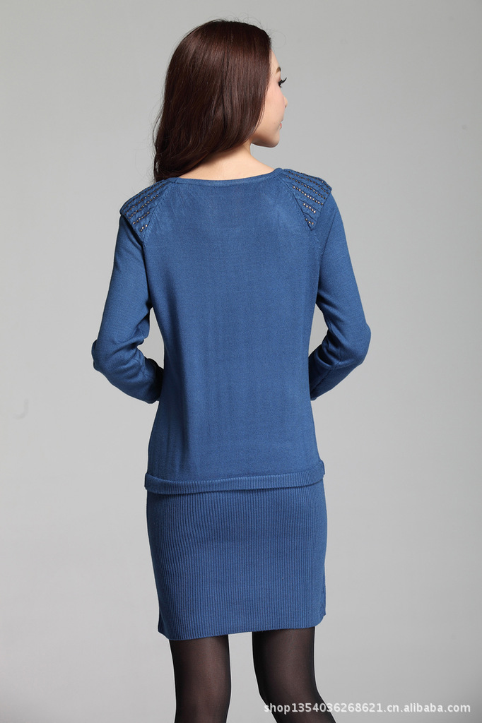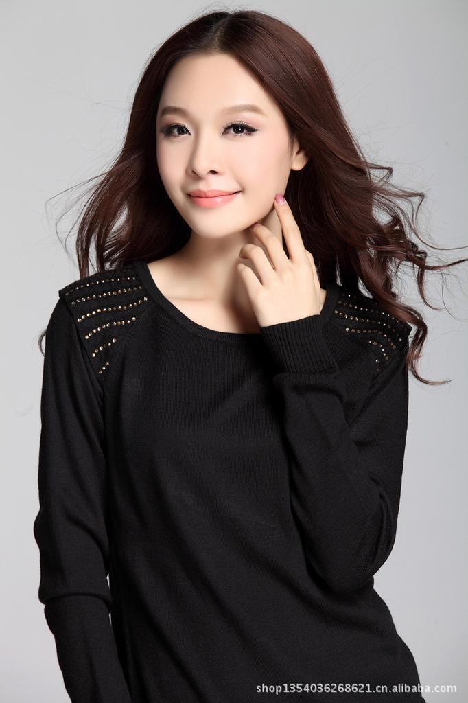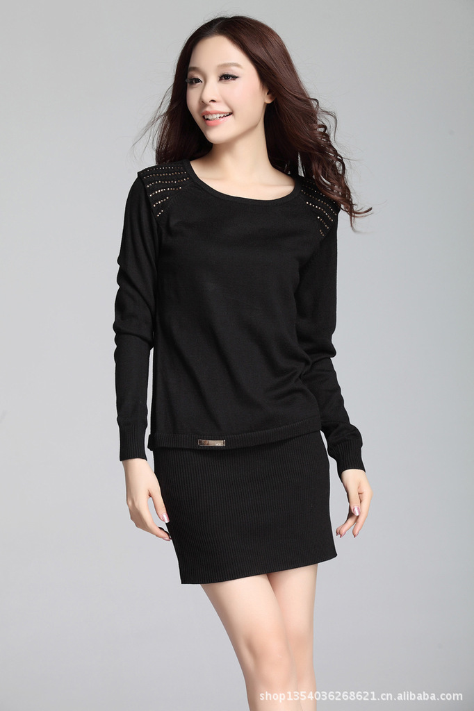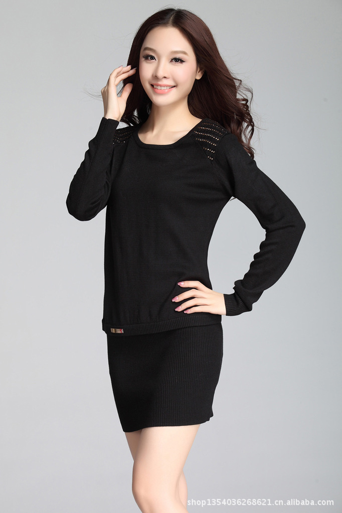款式说明 | 时尚雅致的一款长款修身女士毛衣,烫钻点缀增添了一丝婉约华丽感,螺纹收缩的大摆设计很具亮点 |