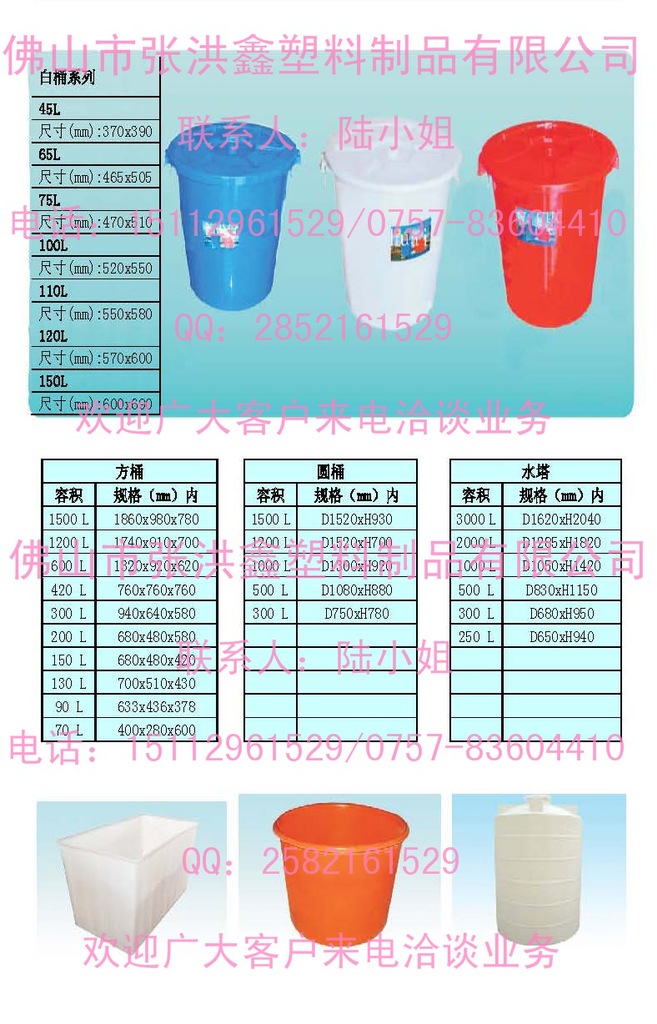 款式 | 储物桶、大水桶(水塔)、涂料桶、油墨桶、塑料扁罐、塑料铁箍桶、塑料方桶、塑料圆罐 |