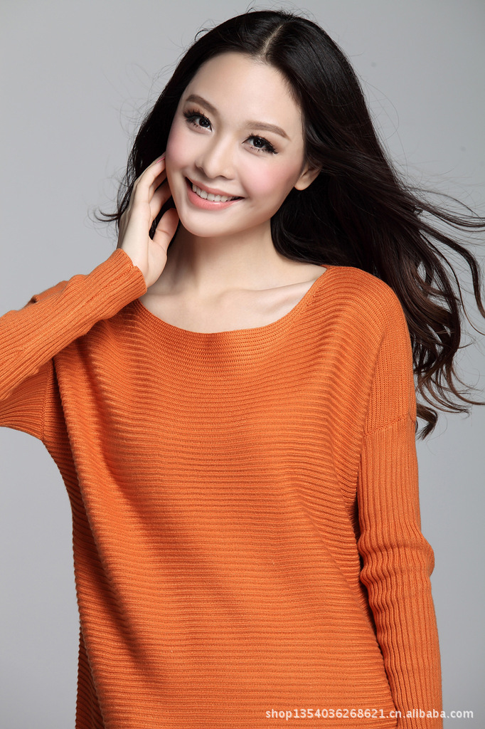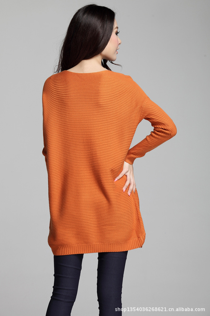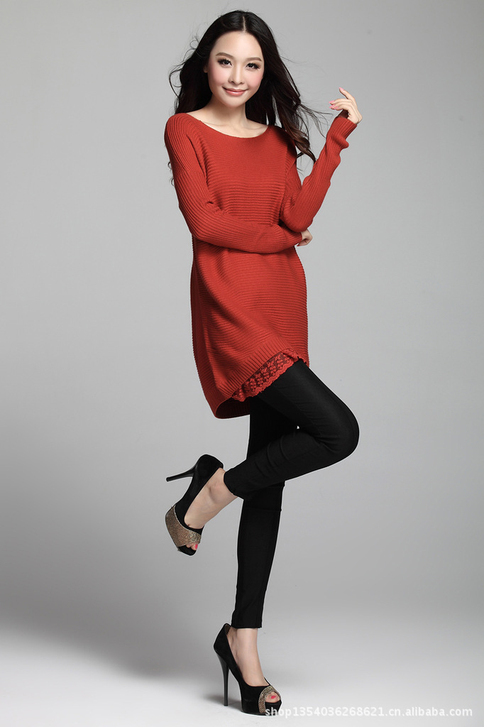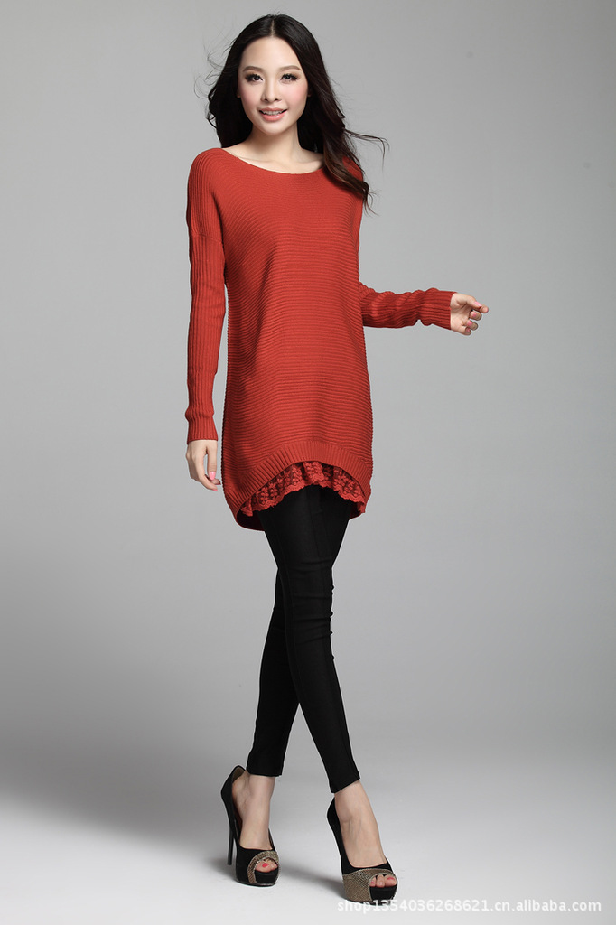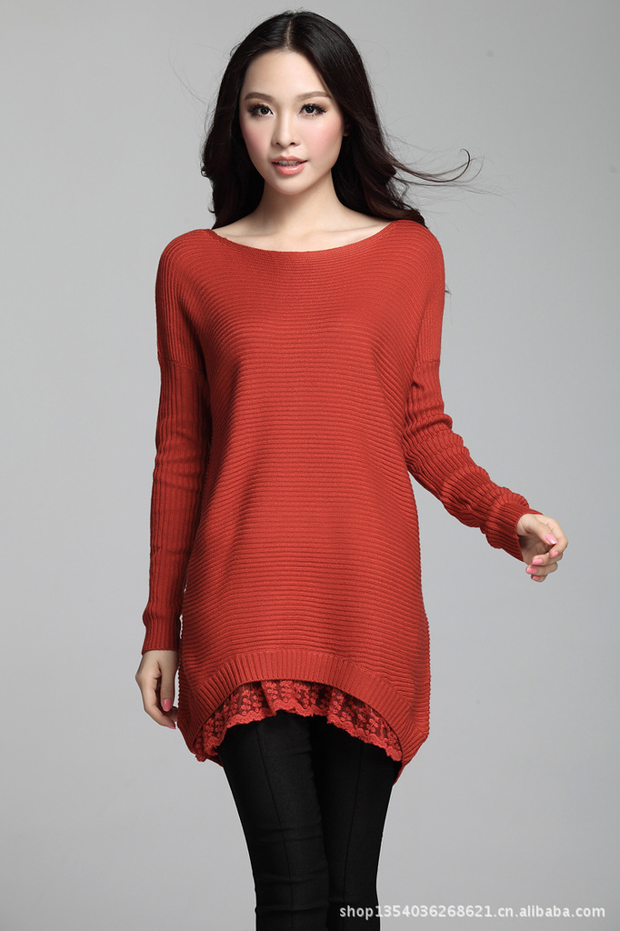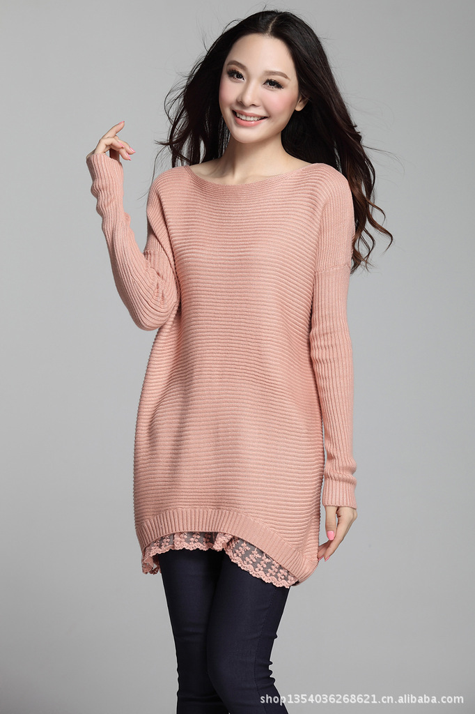 冬装热销女装毛衣 时尚韩版蕾丝下摆女式宽松 中长款毛衣68020