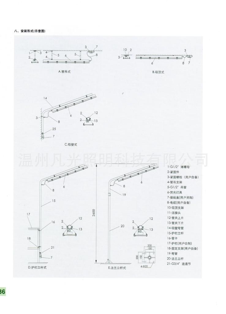 7、SBF6216防水防尘防腐荧光灯安装方式多样,电缆布线。