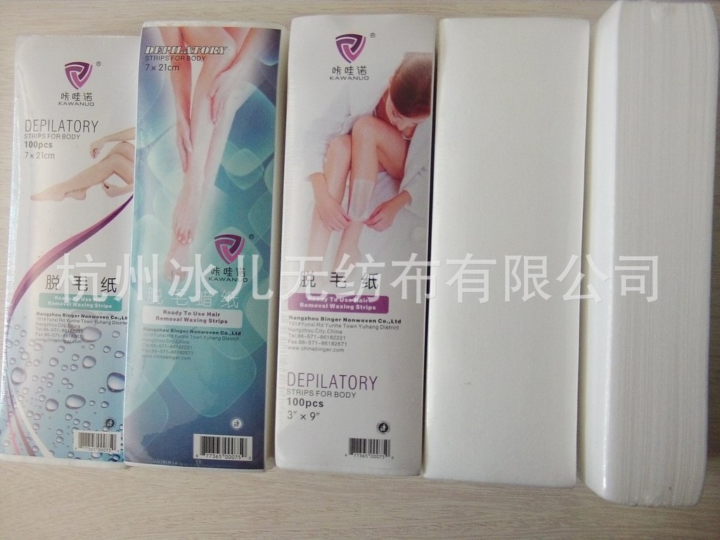 原材料采用优质无纺布,不含有害物质,健康环保。颜色以白色为主。常规尺寸有7/7.5/8*20/22/23cm,另有3.8*10cm,可照顾不同部位的需求,尺寸多样化,使用更方便。产品包装美观大方,有热塑包装、盒装、烟样包装等等。公司生产无纺布脱毛片主要出口至欧美国家,出口额年年递增。