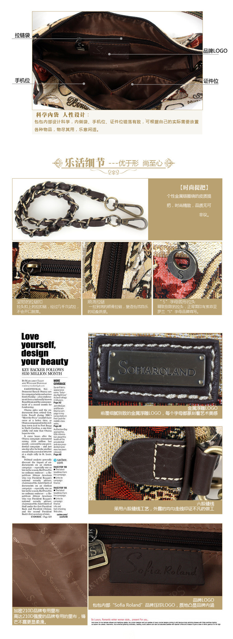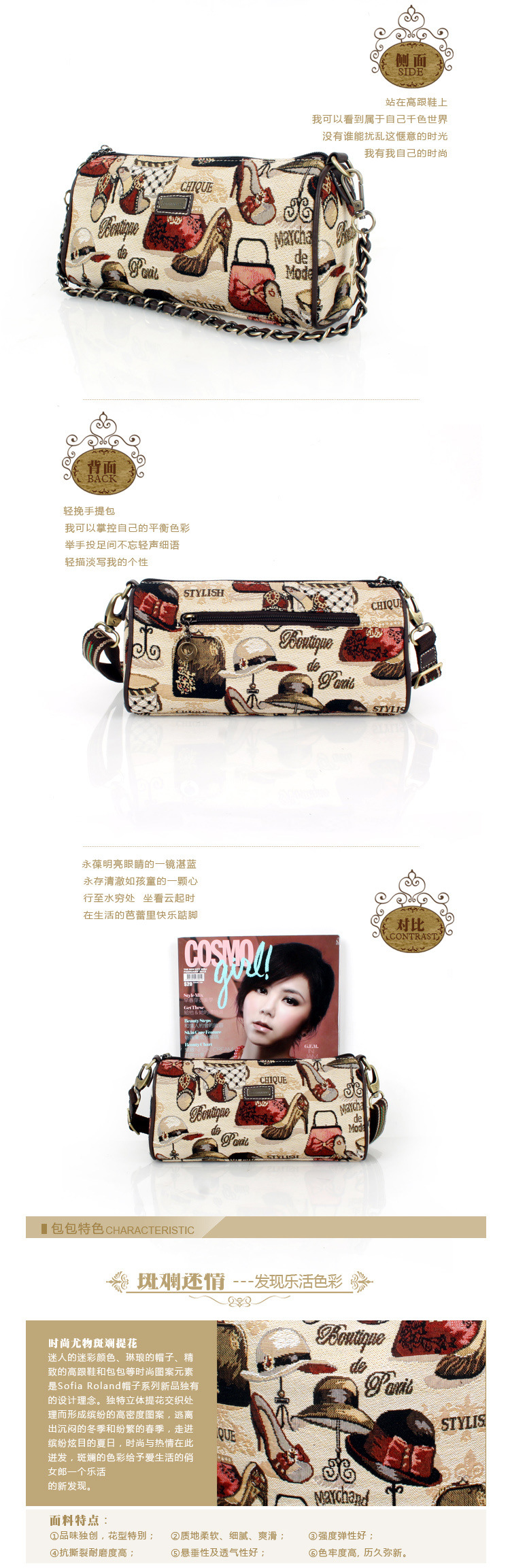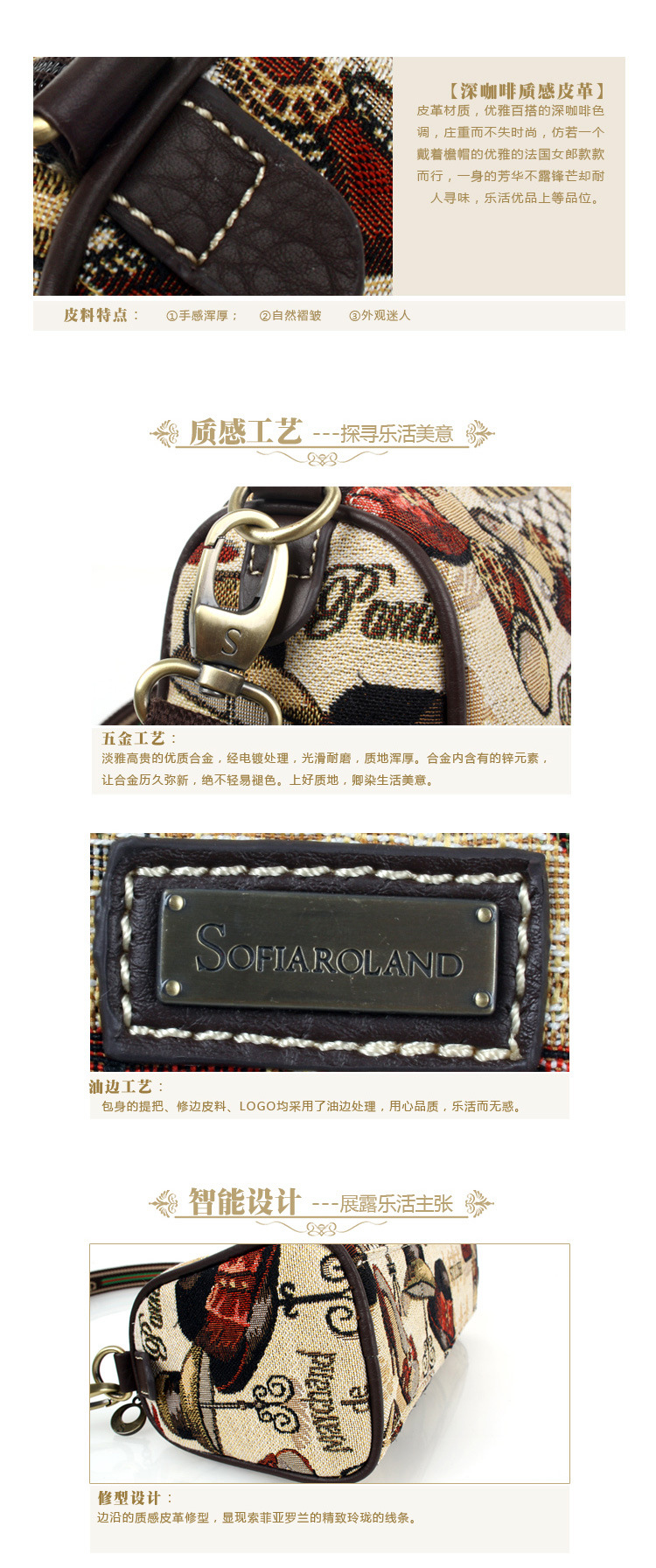 终端形象不但展示Sofia Roland索菲亚罗兰形象,宣传Sofia Roland索菲亚罗兰价值吸引消费者购买,同时,终端形象还统一了Sofia Roland索菲亚罗兰的品牌视觉,起着重大的广告功能,不断强化消费者对Sofia Roland索菲亚罗兰的记忆和认知。总部将提供完整的终端规划设计手册及统一形象的展示货架,轻松拥有精致卖场,免费卖场形象设计,免费提供设计图方案及开业期间的赠品、pop、贵宾卡、员工制服等一些了专卖店配套设施。