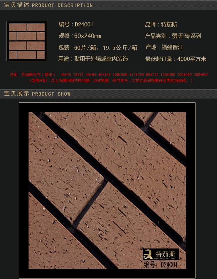 厂家直销 劈开砖 外墙劈开砖 陶土劈开砖 窑变砖